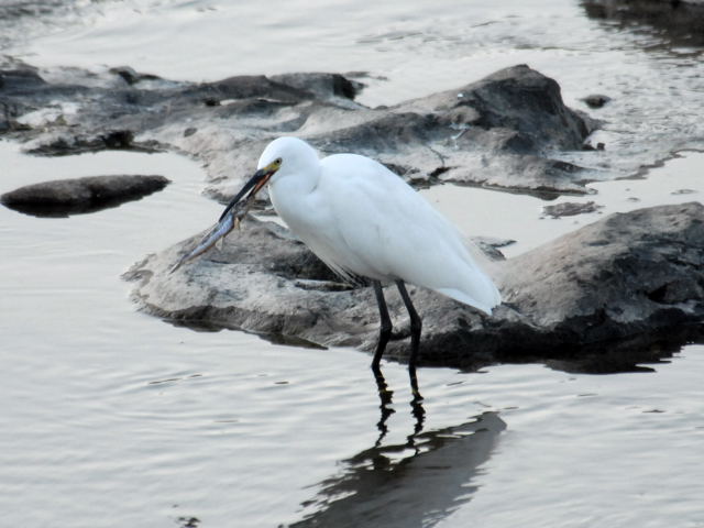 コサギが大きな魚を取りました