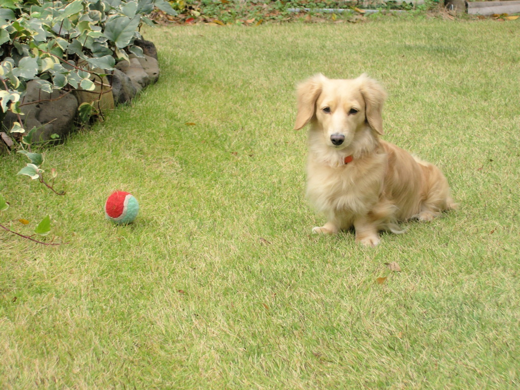芝生でボールで遊びます