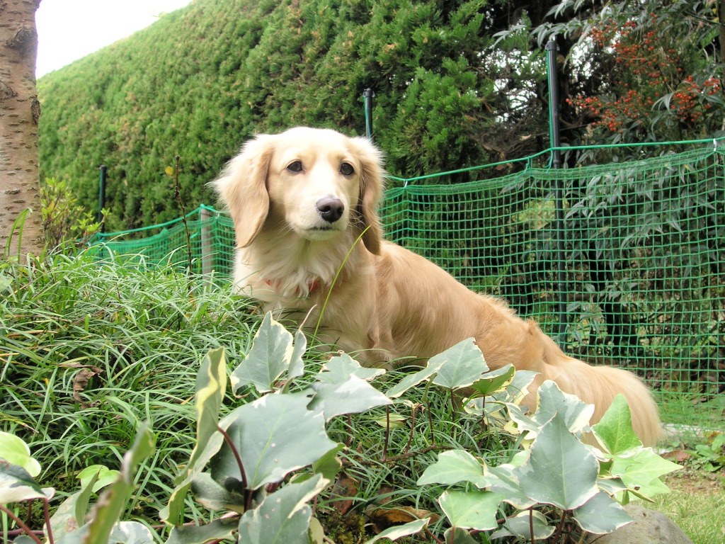 今日は、風が強くすこし肌寒いようです。 この後、花蘭は寒さに弱く家の中に駆け込みソファーの上で猫のように包まっています。これから寒くなるのに......。 今年は、暖かい日が多くて芝生の色も青々しいです。