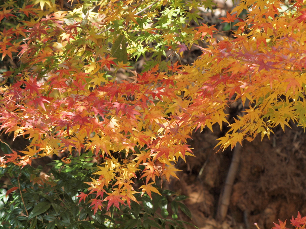 裏庭の山縁の紅葉が色づきました。とても綺麗です。秋(冬)も深まり最後の紅葉でしょう。今年の紅葉は、暖冬で冬まで葉が落ちません。 昼下がりのこぼれ日が紅葉を引き立てています。