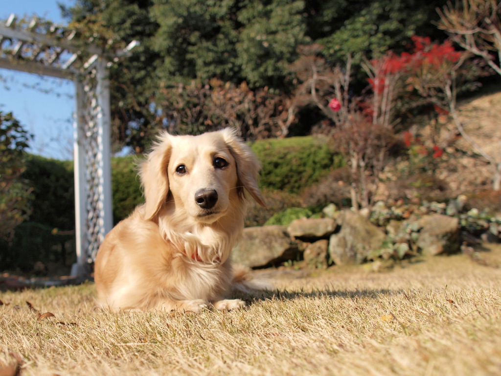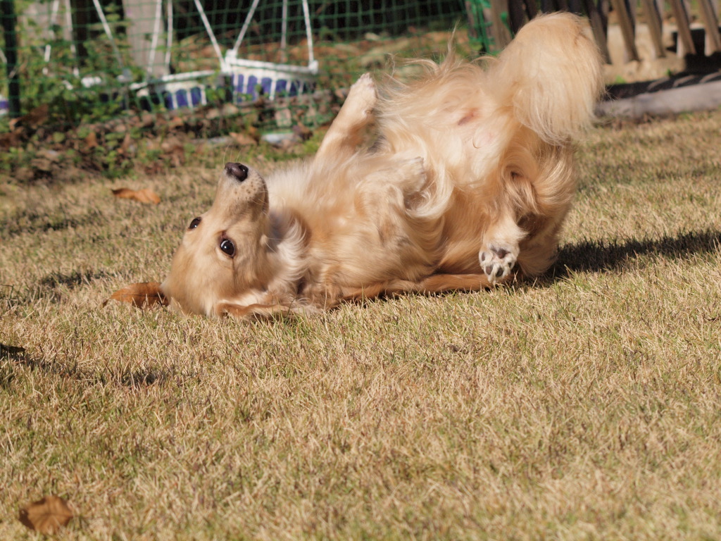 庭の芝生も青みが少なくなりました。天気の良い日は芝生ででんぐり返しが一番です。いつも暖かい部屋のなかにいますので運動不足です。今日は、しっかり体力をつけます。 芝生は花蘭のドックランです。