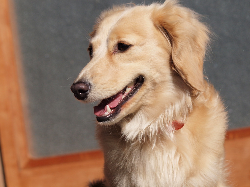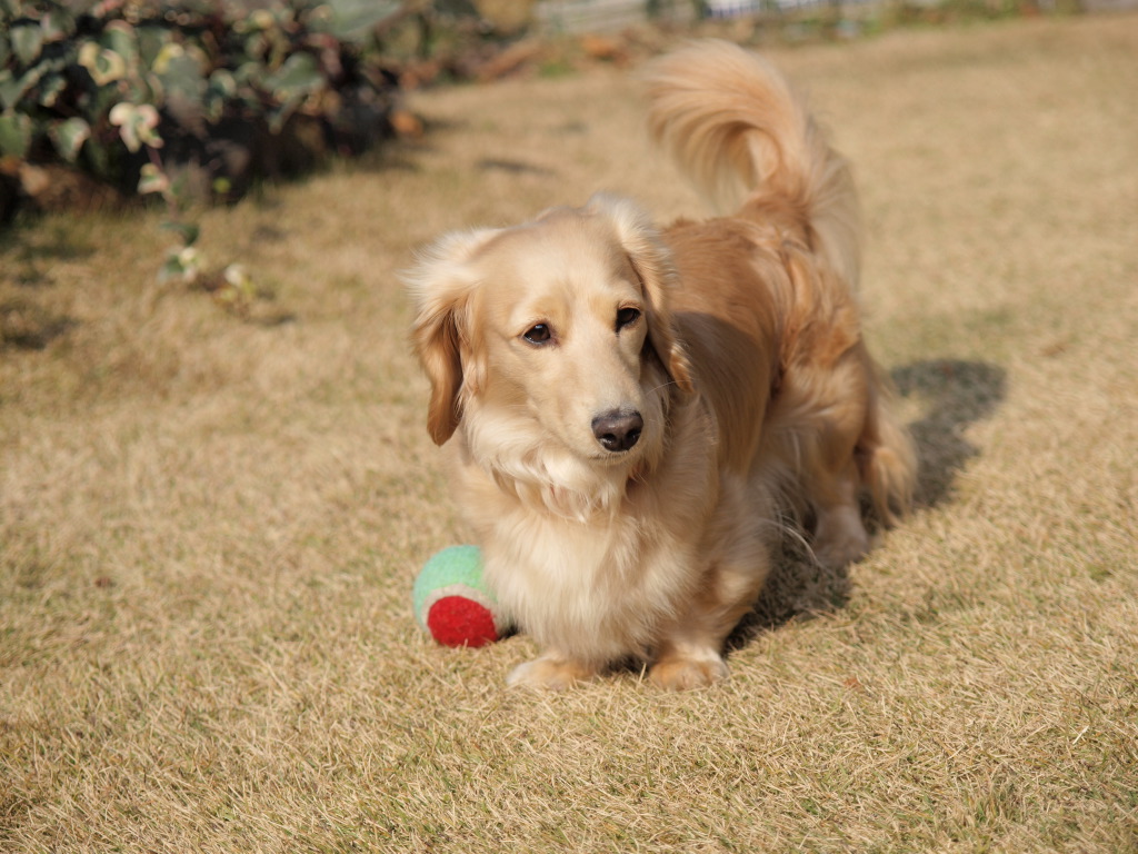 冬の朝の日だまりで花蘭は、ボール遊びです。ボールをくわえて庭を駆け回ります。疲れたのでひと休みです。 花蘭は私と遊びたくて部屋のなかにいる私を迎えに来ます。私が蹴るボールを待っています。動いているボールを追いかけるのが大好きです。