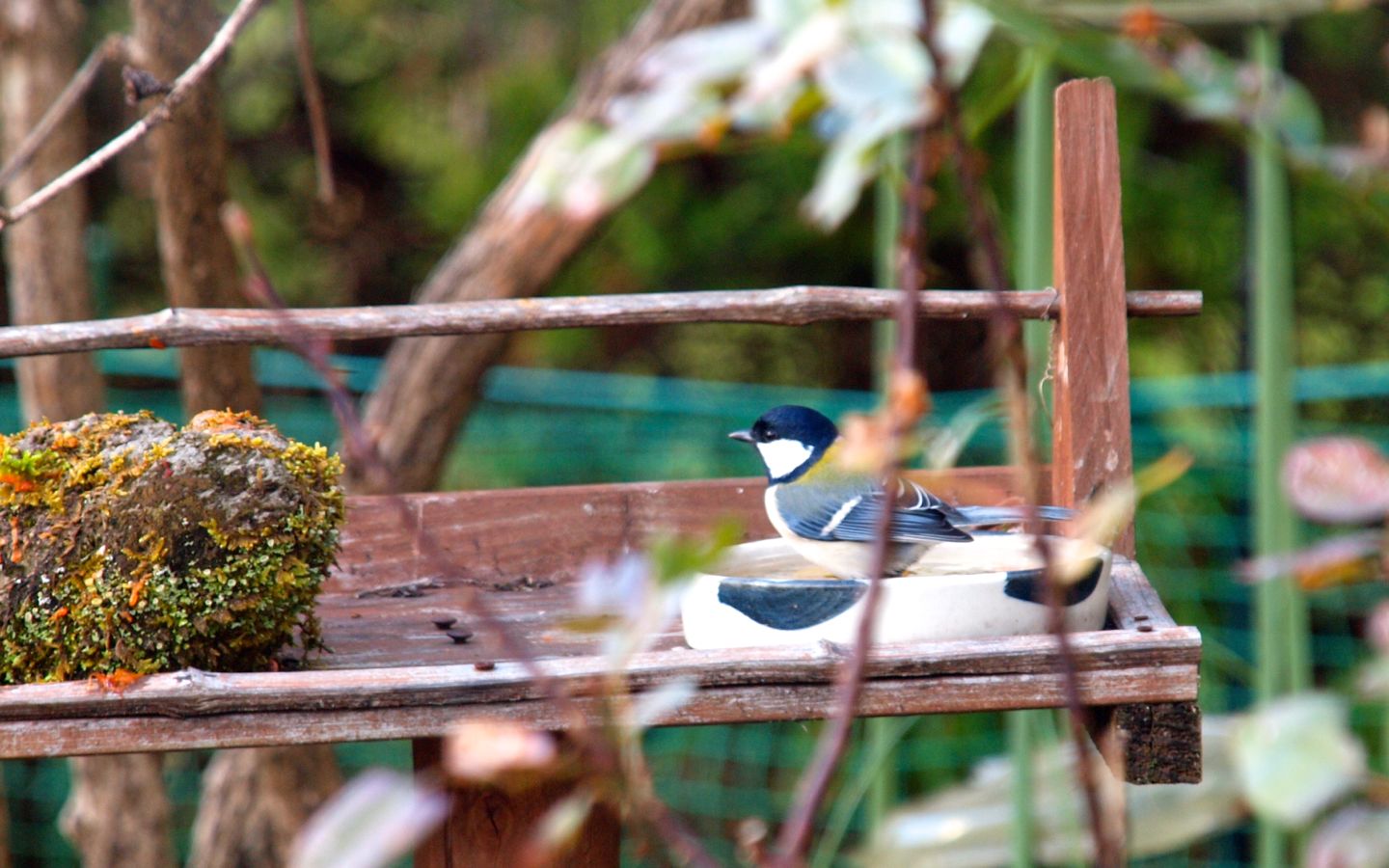 シジュウカラが餌台の水を飲みにやってきました