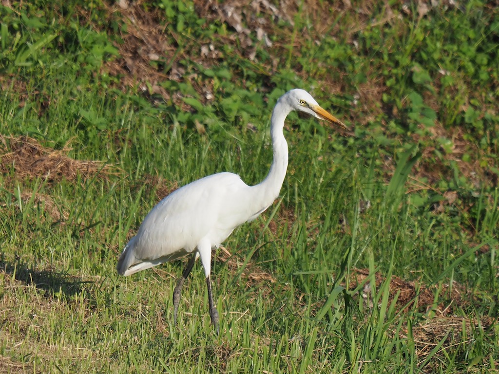 自宅東側の川土手に白鷺がやって来ました